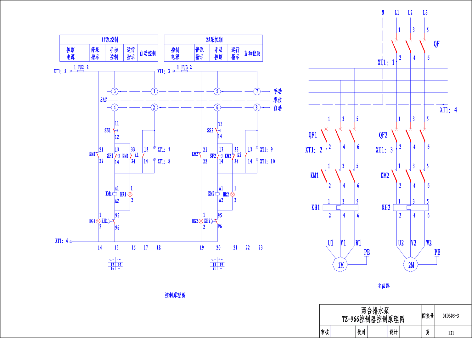 (1)采用数字电路实现双泵自动交替运行,解决了双泵工作方式中备用泵长期不使用的生锈卡死现象。